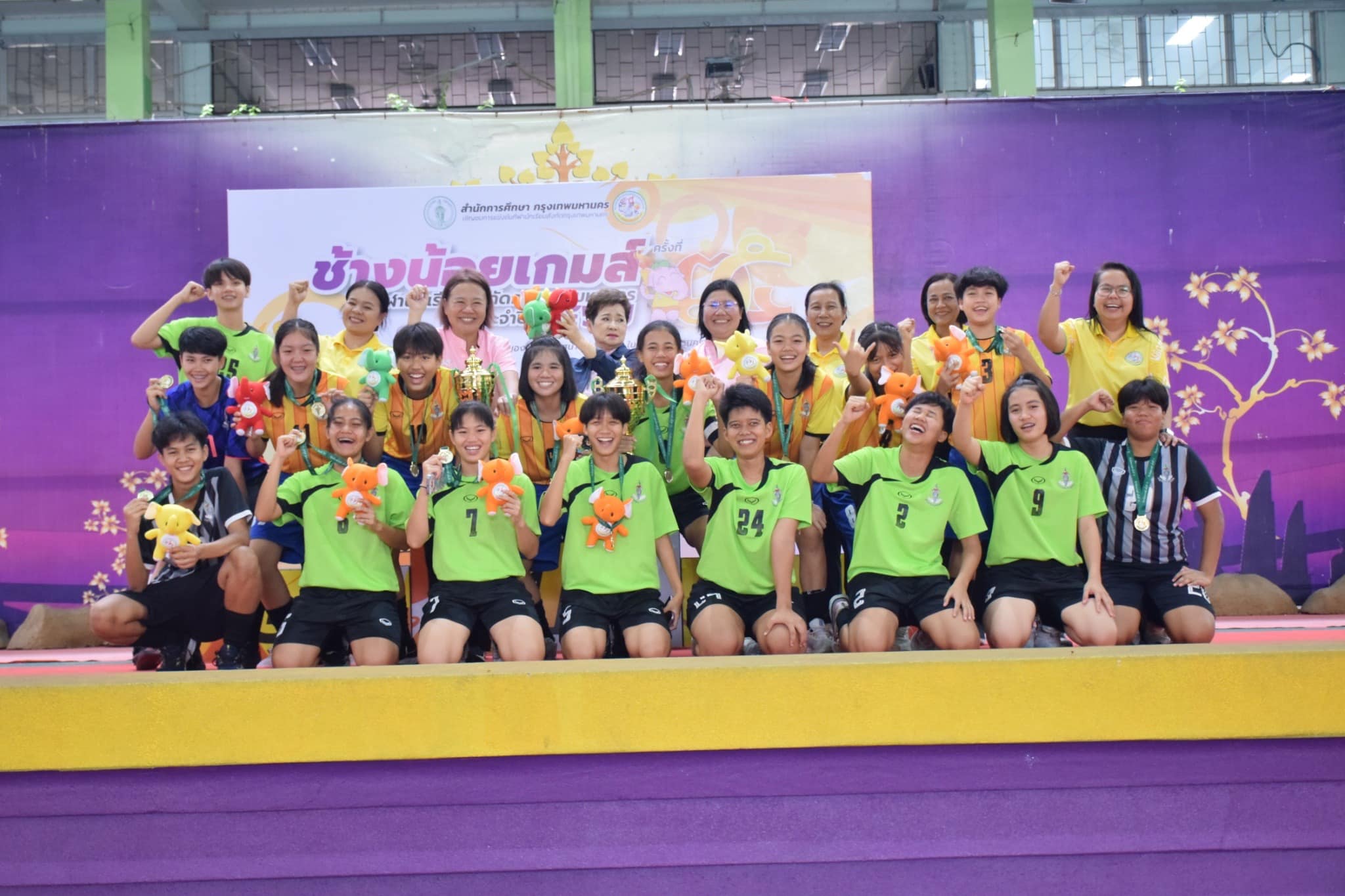 การแข่งขันฟุตซอลหญิง กล่าวรายงานและสรุปผลการแข่งขัน ในพิธีปิดการแข่งขัน พร้อมด้วยนางชุติสา ศาสตร์สาระ ผู้ช่วยผู้อำนวยการเขตดินแดง นางสาวธิติมา สมปัญญา หัวหน้าฝ่ายการศึกษา คณะผู้บริหารสถานศึกษาเขตดินแดง และคณะกรรมการดำเนินงานจัดการแข่งขัน ร่วมมอบถ้วยรางวัลและประกาศนียบัตร ให้กับนักกีฬาที่เข้าร่วมการแข่งขัน