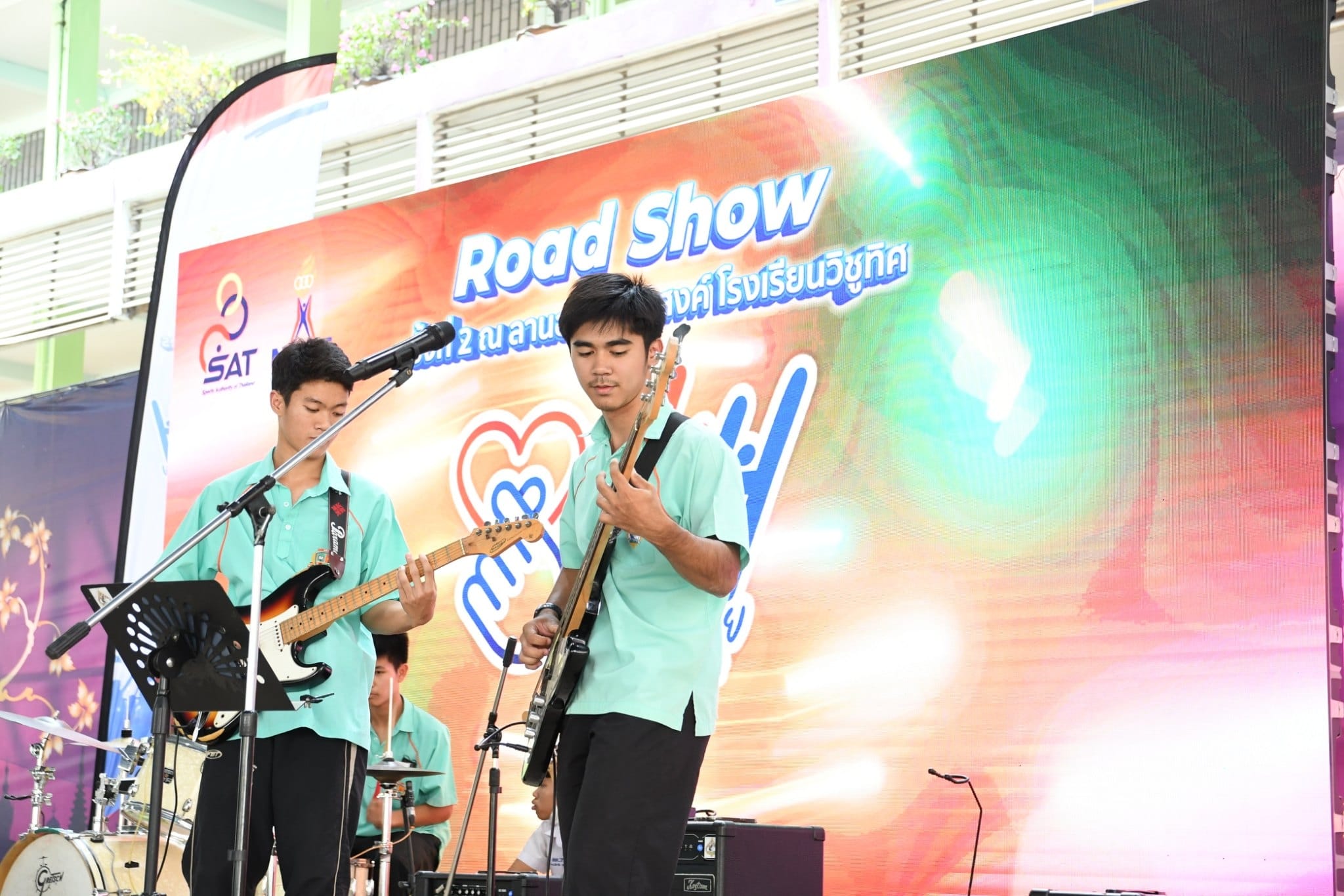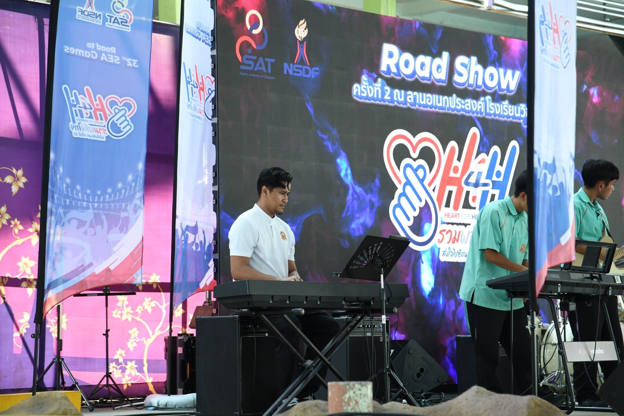 ท่าน ผอ. ธนรา สิรธำรงเลิศ คณะครู และนักเรียน ร่วมกิจกรรม Road Show Heart for Heroes รวมพลังไทย ส่งใจไปซีเกมส์ ครั้งที่ 32 โดยมีตัวแทนนักเรียนระดับชั้นมัธยมศึกษาแสดง cover dance และเเสดงดนตรีสด