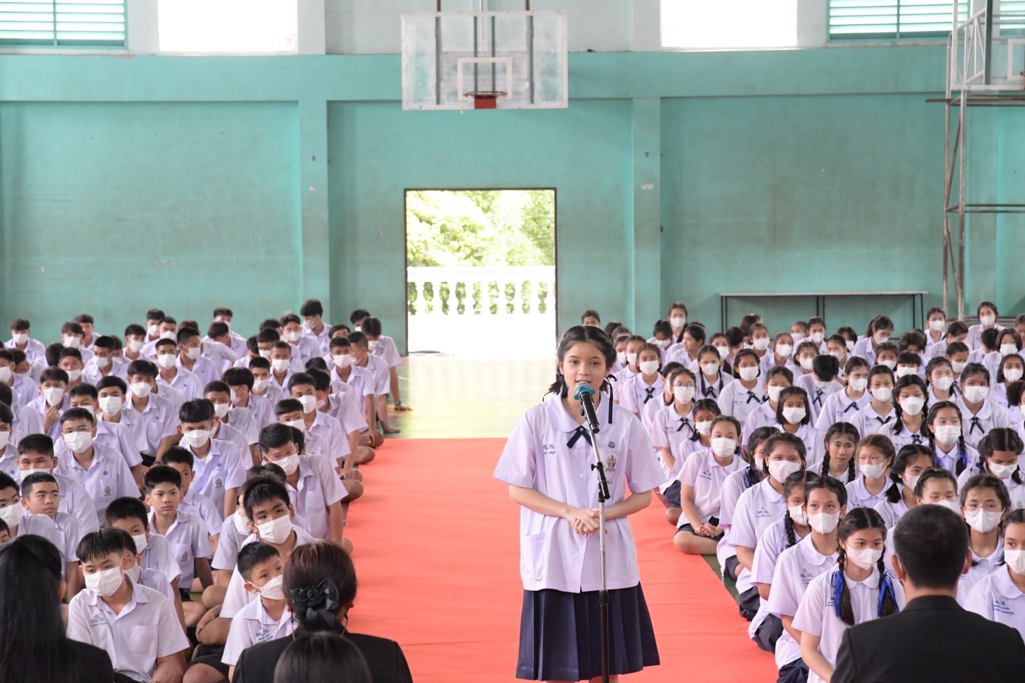 ท่าน ผอ.ธนรา สิรธำรงเลิศ ประธานในพิธีปัจฉิมนิเทศและรับประกาศนียบัตรของนักเรียนชั้น ป.6, ม.3 และ ม.6 ประจำปีการศึกษา 2565 โดยมีท่านรองฯ และคณะครูเป็นเกียรติในพิธี