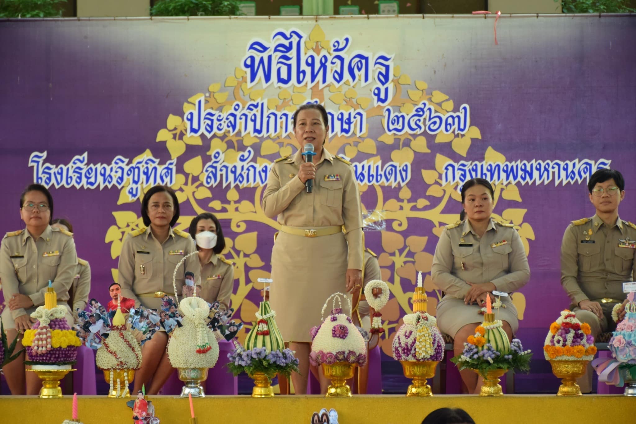 โรงเรียนวิชูทิศ สำนักงานเขตดินแดง จัดพิธีไหว้ครู ประจำปีการศึกษา 2567 โดยมีนางธนรา สิรธำรงเลิศ ผู้อำนวยการสถานศึกษา เป็นประธานในพิธี พร้อมด้วยคณะผู้บริหาร ครู บุคลากรทางการศึกษา และนักเรียน ร่วมพิธีไหว้ครู เพื่อสืบสานประเพณีอันดีงามที่ปฏิบัติสืบต่อกันมา และเป็นโอกาสที่ศิษย์จะได้แสดงความเคารพและความกตัญญูกตเวทิตาต่อครู และมีกิจกรรมการมอบทุนการศึกษาให้กับนักเรียน