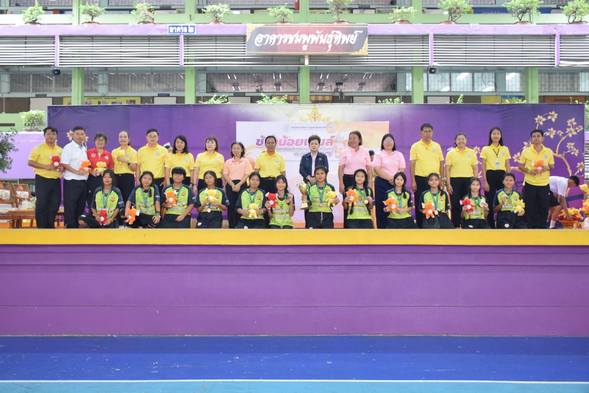 การแข่งขันฟุตซอลหญิง กล่าวรายงานและสรุปผลการแข่งขัน ในพิธีปิดการแข่งขัน พร้อมด้วยนางชุติสา ศาสตร์สาระ ผู้ช่วยผู้อำนวยการเขตดินแดง นางสาวธิติมา สมปัญญา หัวหน้าฝ่ายการศึกษา คณะผู้บริหารสถานศึกษาเขตดินแดง และคณะกรรมการดำเนินงานจัดการแข่งขัน ร่วมมอบถ้วยรางวัลและประกาศนียบัตร ให้กับนักกีฬาที่เข้าร่วมการแข่งขัน