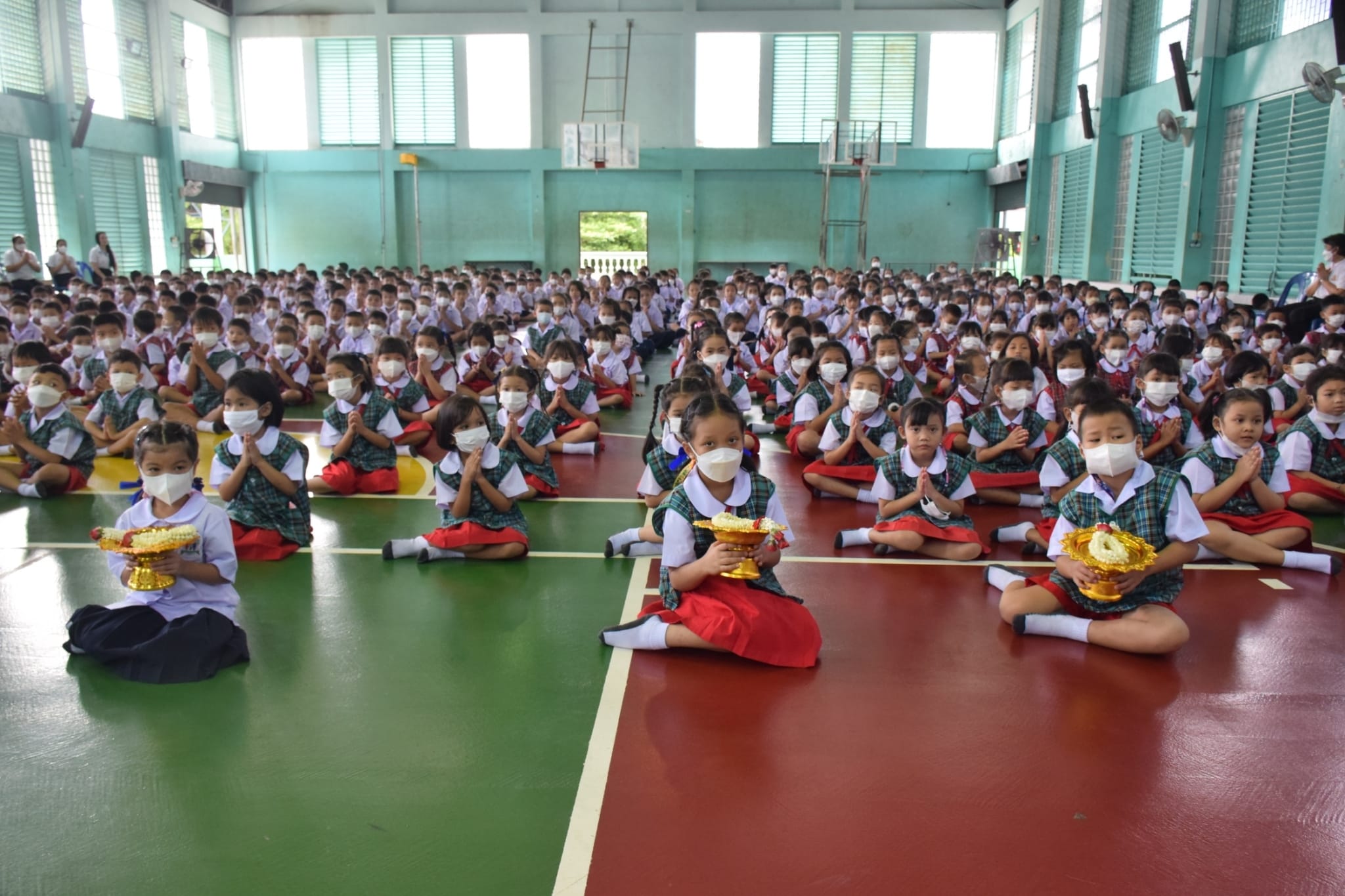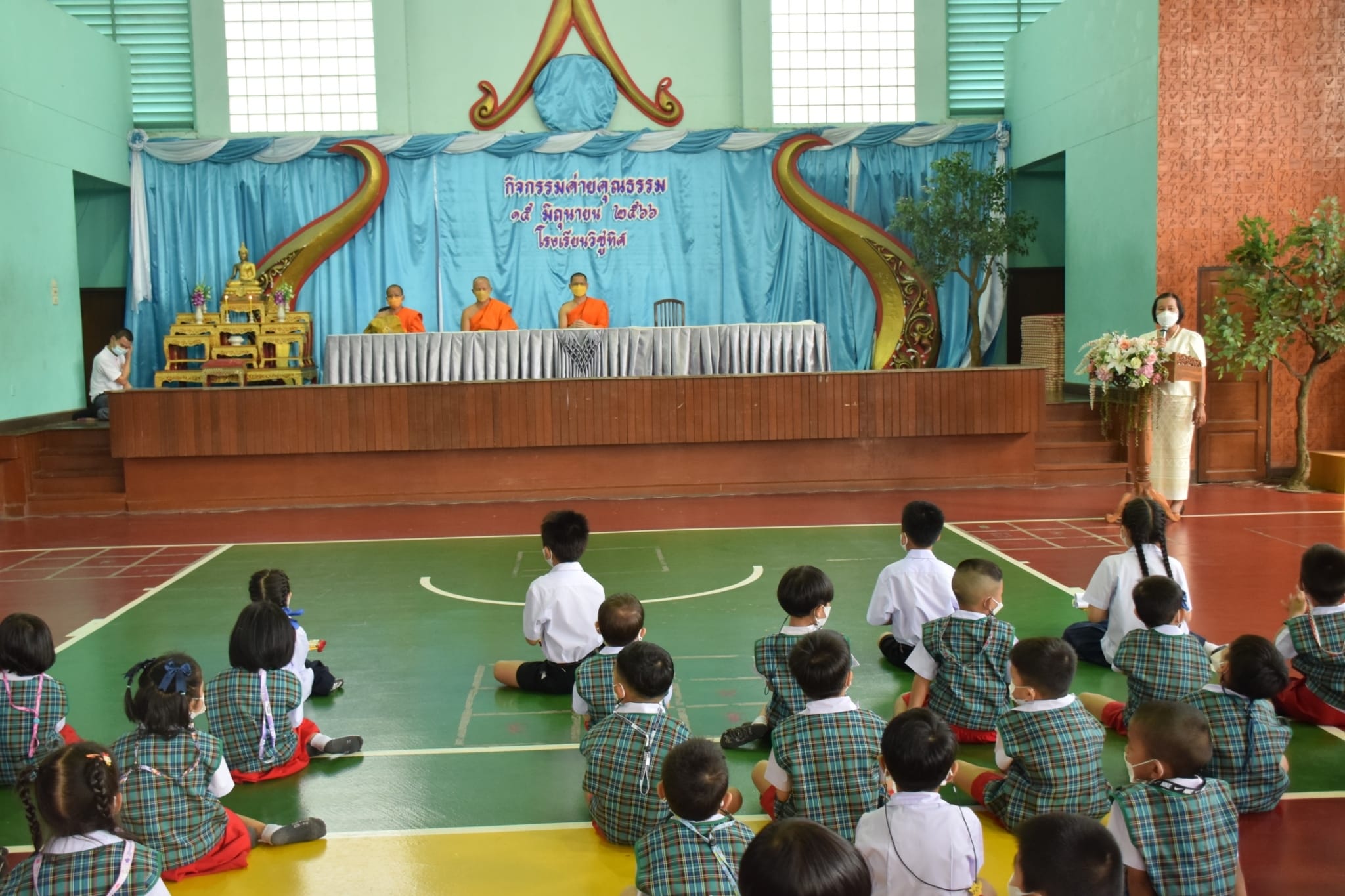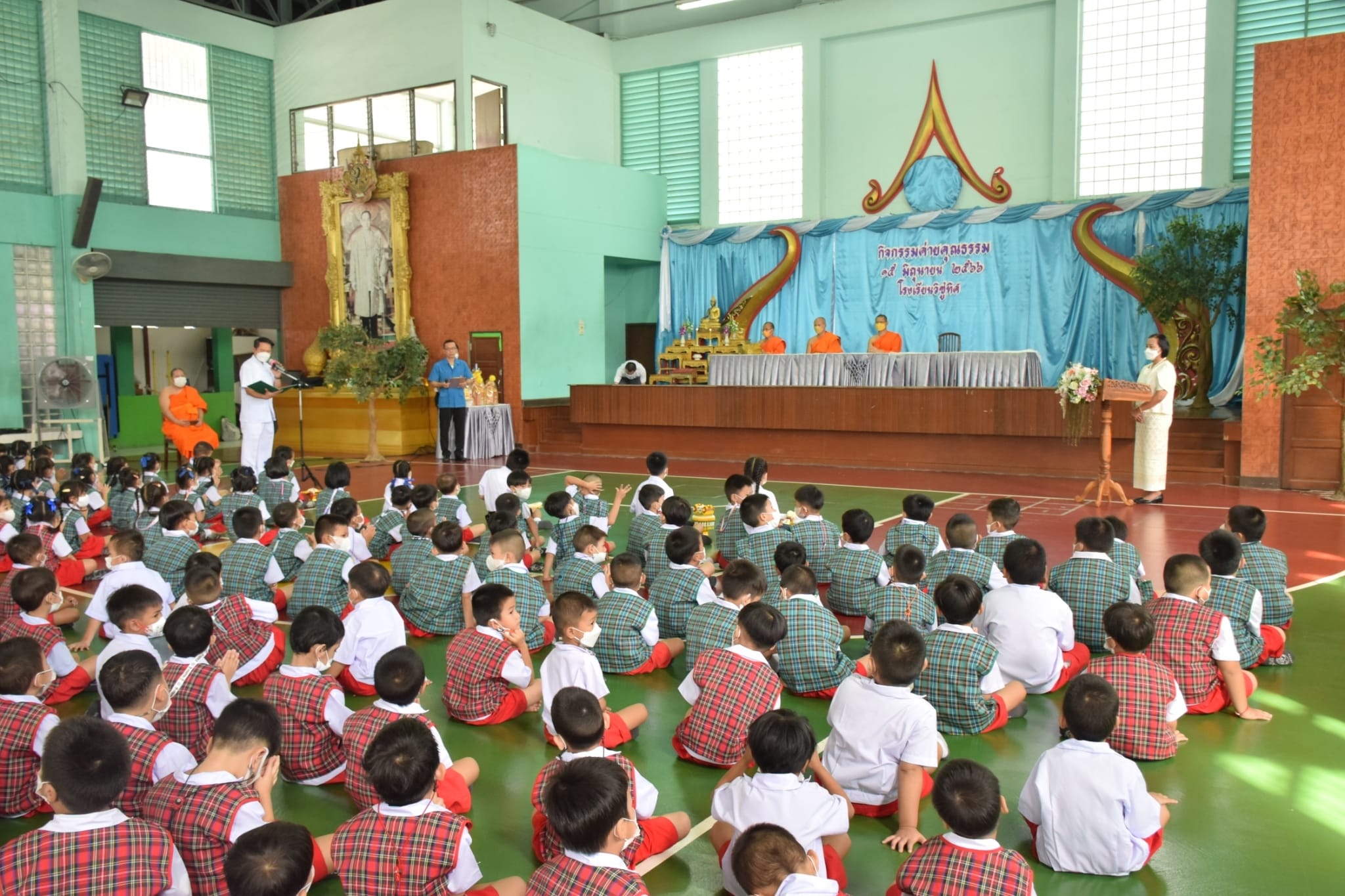 ท่าน ผอ.ธนรา สิรธำรงเลิศ ประธานในพิธีเปิด กิจกรรมค่ายคุณธรรม โดยมีพระอาจารย์จากวัดพรหมวงศาราม จัดกิจกรรมให้กับนักเรียนชั้นอนุบาล-ชั้นประถมศึกษาปีที่ 3...สาธุ อนุโมทนาบุญค่ะ