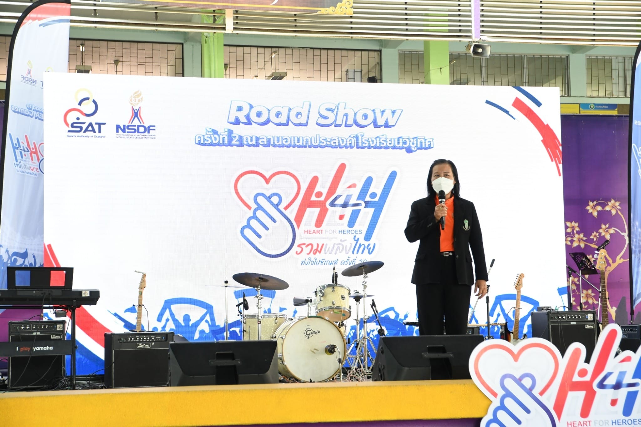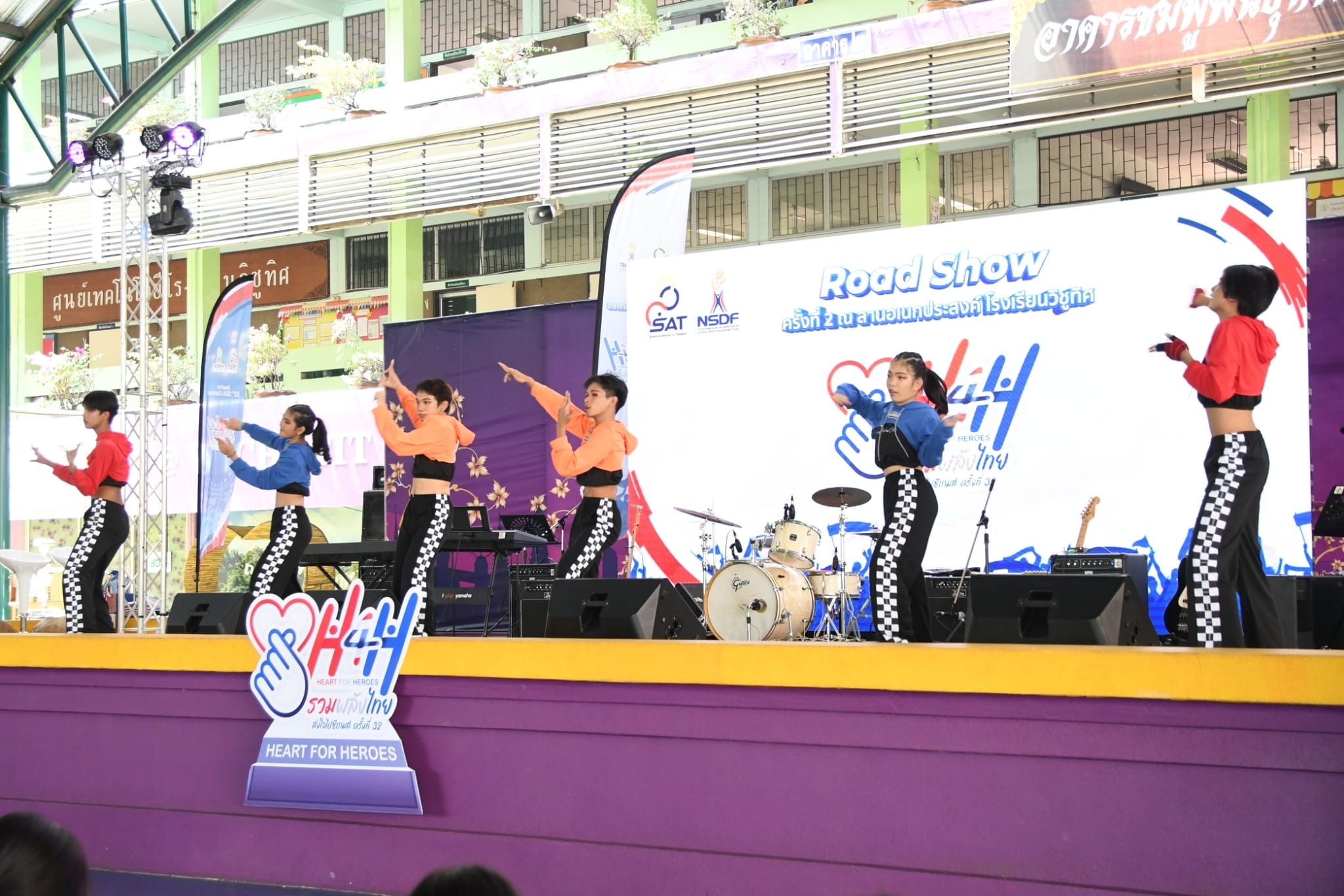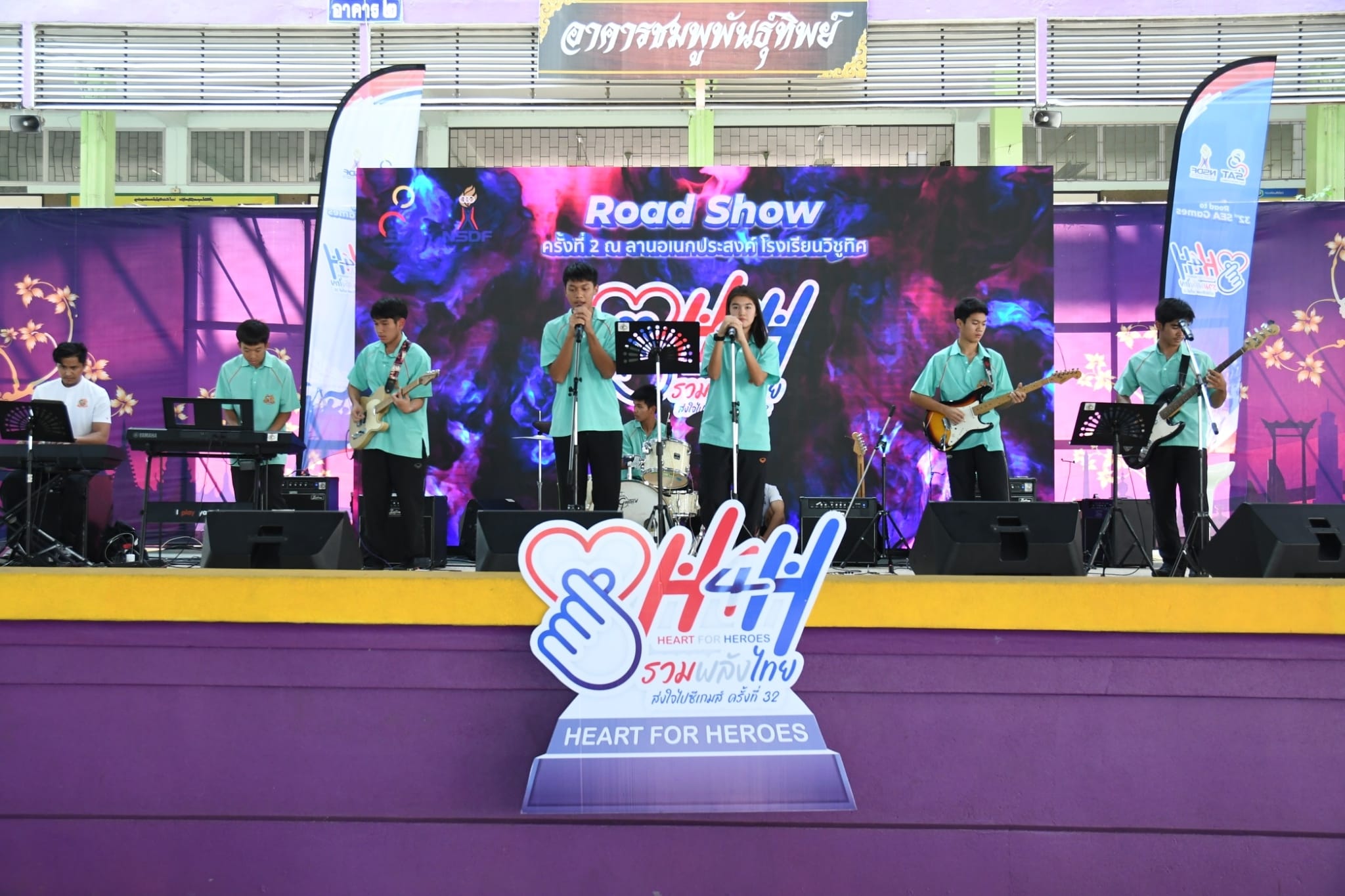 ท่าน ผอ. ธนรา สิรธำรงเลิศ คณะครู และนักเรียน ร่วมกิจกรรม Road Show Heart for Heroes รวมพลังไทย ส่งใจไปซีเกมส์ ครั้งที่ 32 โดยมีตัวแทนนักเรียนระดับชั้นมัธยมศึกษาแสดง cover dance และเเสดงดนตรีสด