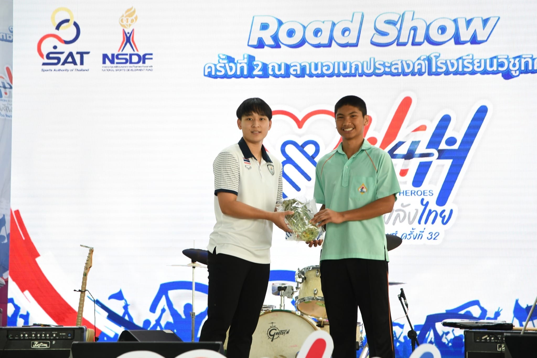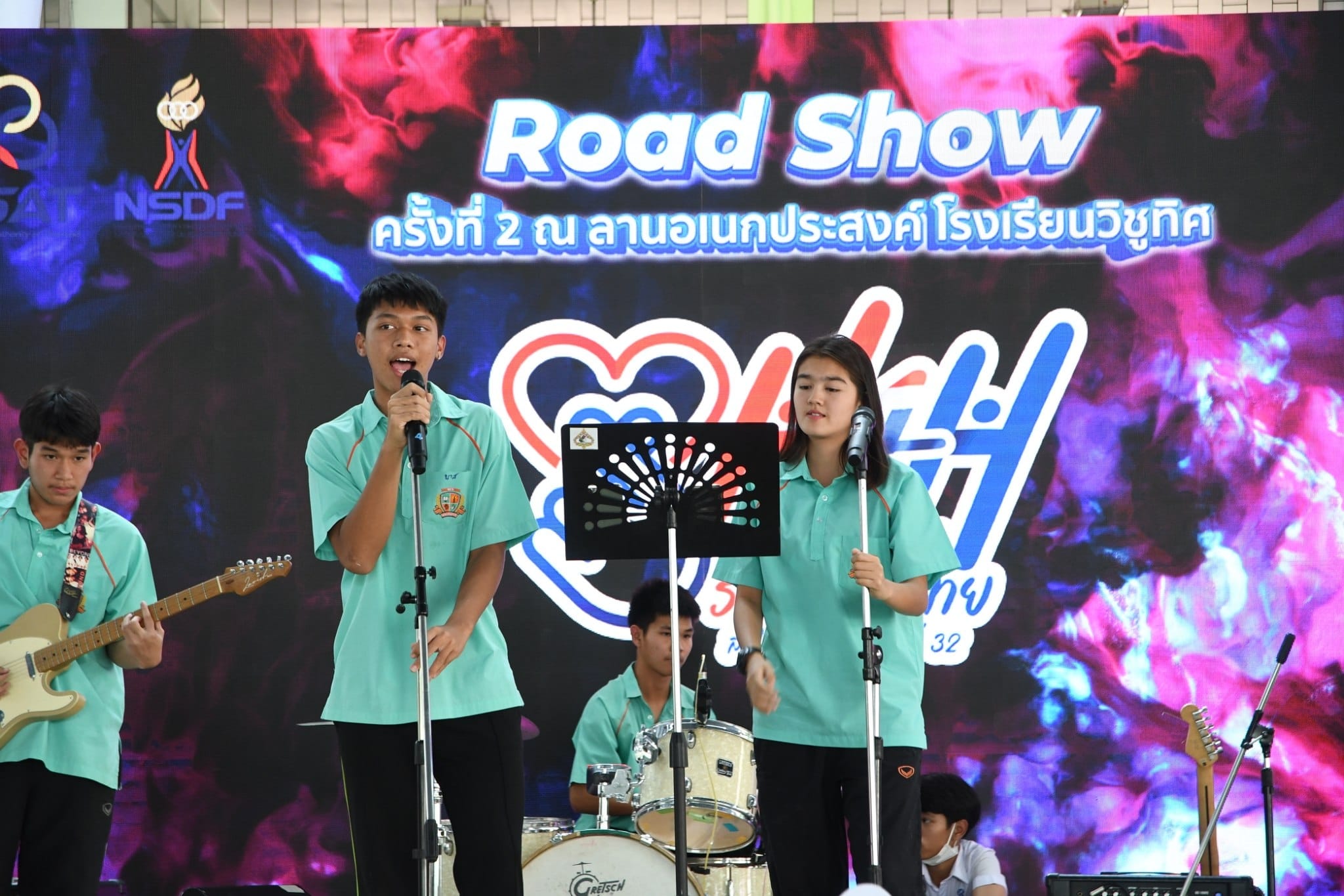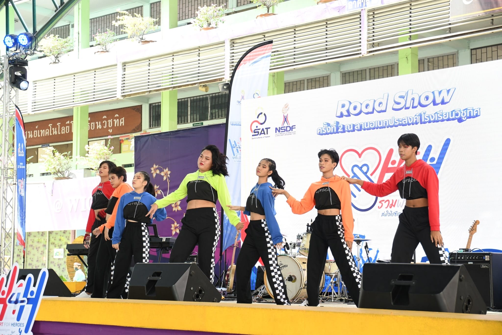 ท่าน ผอ. ธนรา สิรธำรงเลิศ คณะครู และนักเรียน ร่วมกิจกรรม Road Show Heart for Heroes รวมพลังไทย ส่งใจไปซีเกมส์ ครั้งที่ 32 โดยมีตัวแทนนักเรียนระดับชั้นมัธยมศึกษาแสดง cover dance และเเสดงดนตรีสด