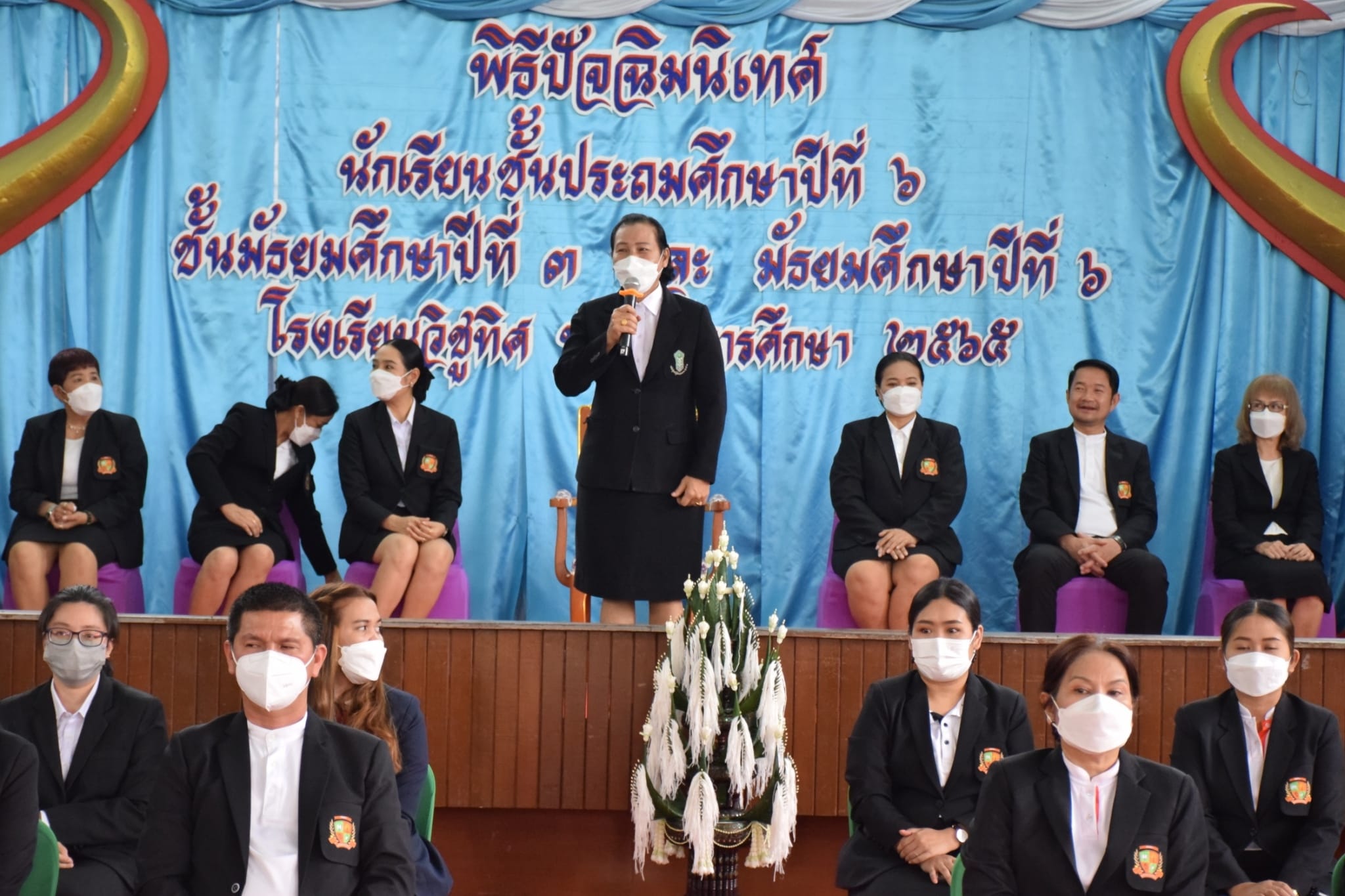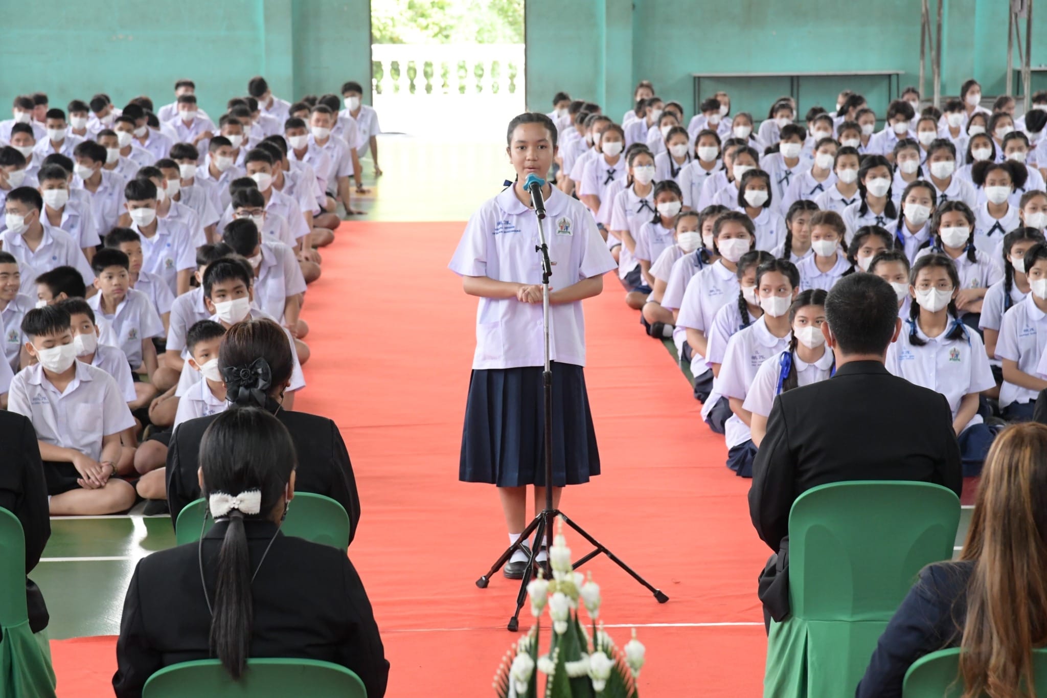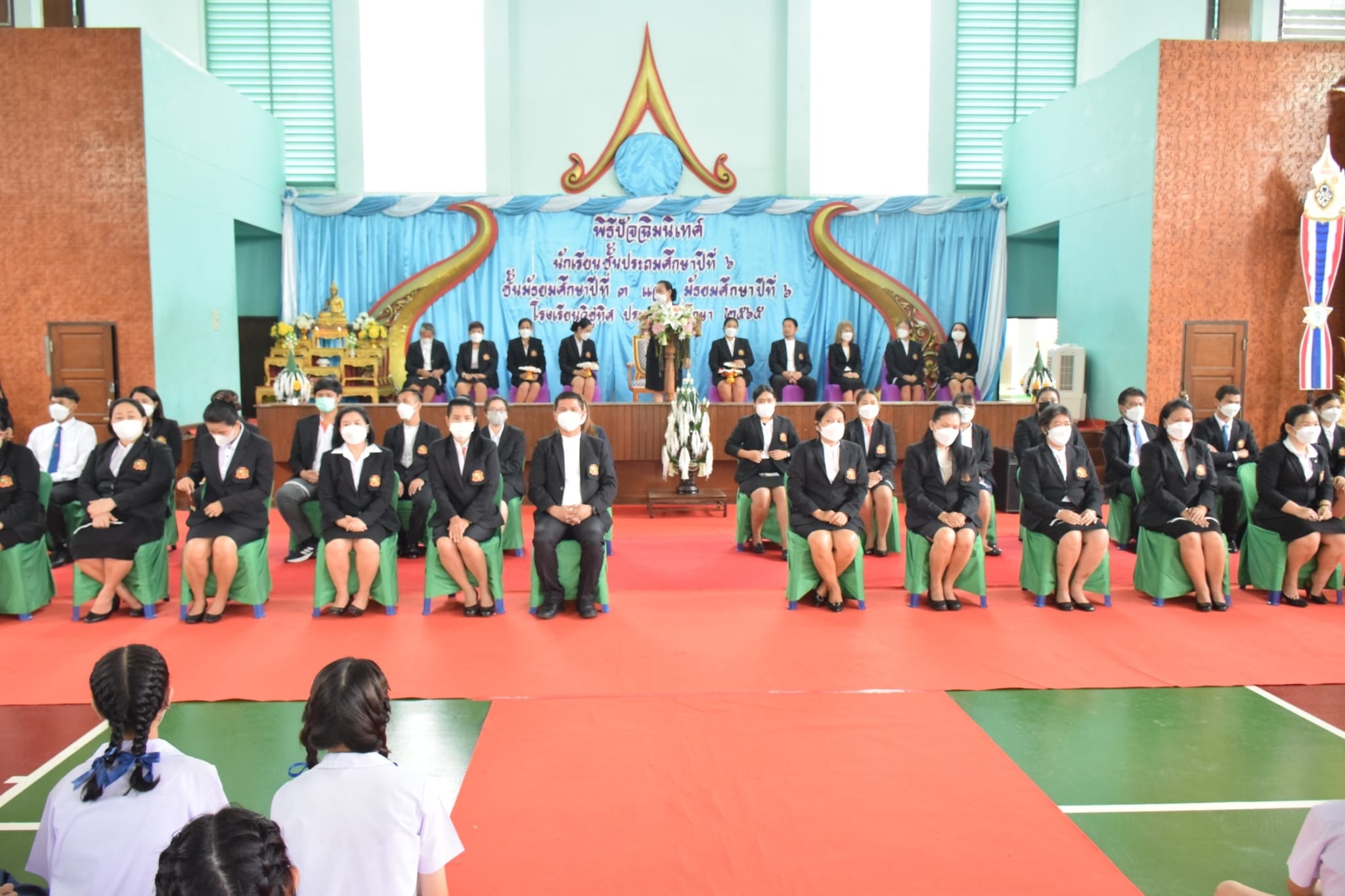 ท่าน ผอ.ธนรา สิรธำรงเลิศ ประธานในพิธีปัจฉิมนิเทศและรับประกาศนียบัตรของนักเรียนชั้น ป.6, ม.3 และ ม.6 ประจำปีการศึกษา 2565 โดยมีท่านรองฯ และคณะครูเป็นเกียรติในพิธี