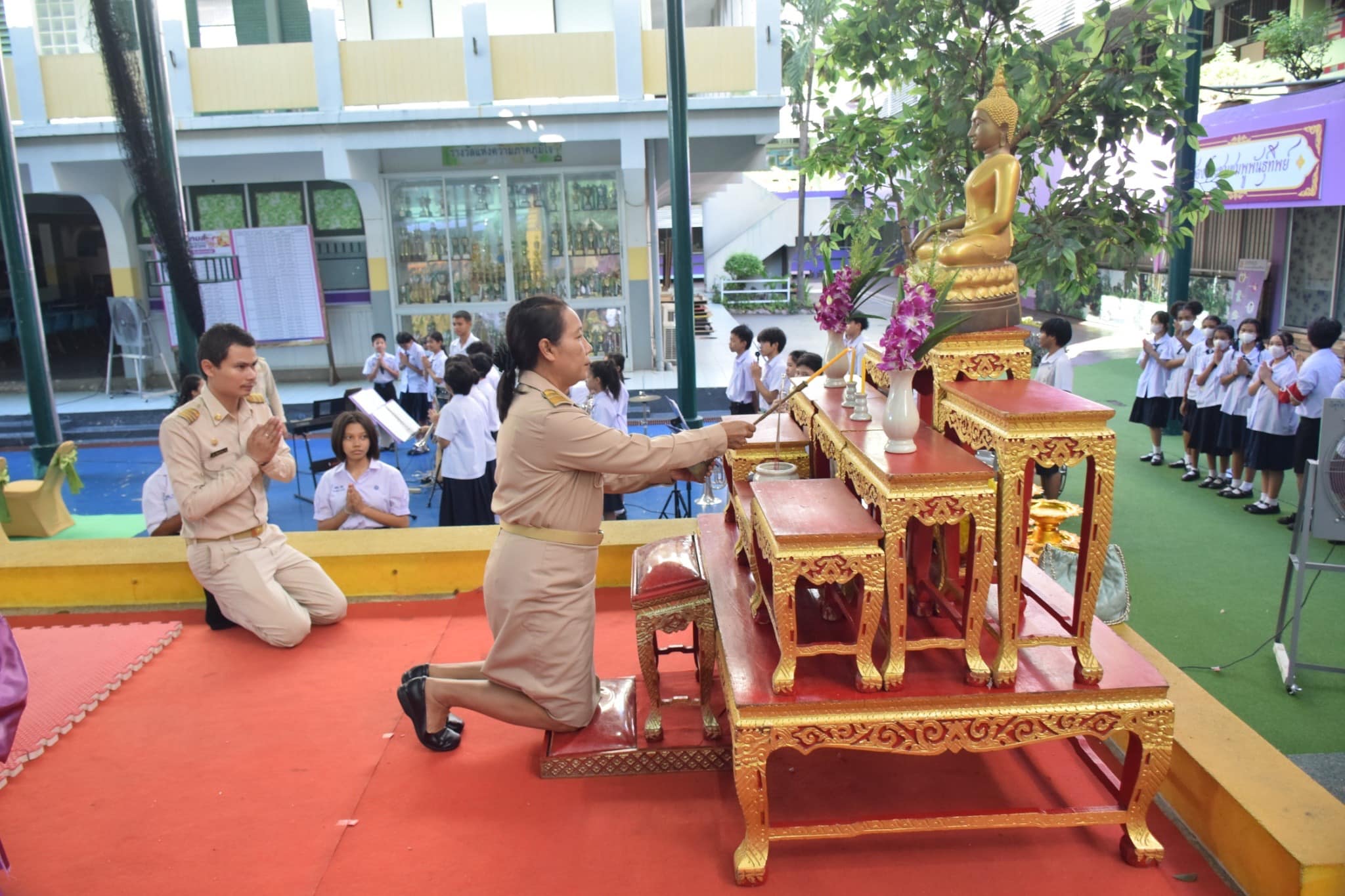 โรงเรียนวิชูทิศ สำนักงานเขตดินแดง จัดพิธีไหว้ครู ประจำปีการศึกษา 2567 โดยมีนางธนรา สิรธำรงเลิศ ผู้อำนวยการสถานศึกษา เป็นประธานในพิธี พร้อมด้วยคณะผู้บริหาร ครู บุคลากรทางการศึกษา และนักเรียน ร่วมพิธีไหว้ครู เพื่อสืบสานประเพณีอันดีงามที่ปฏิบัติสืบต่อกันมา และเป็นโอกาสที่ศิษย์จะได้แสดงความเคารพและความกตัญญูกตเวทิตาต่อครู และมีกิจกรรมการมอบทุนการศึกษาให้กับนักเรียน